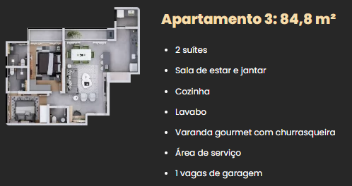 84,80 m² Privativos