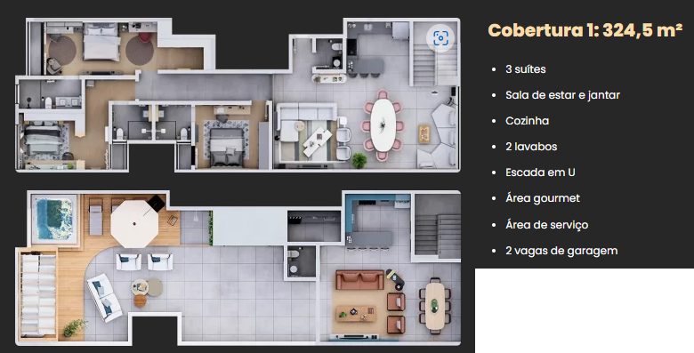 -Cobertura 1: 324,5m²