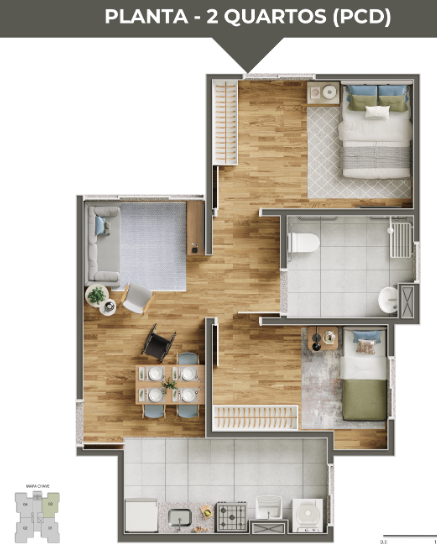 -2 quartos (sendo 1 suíte)